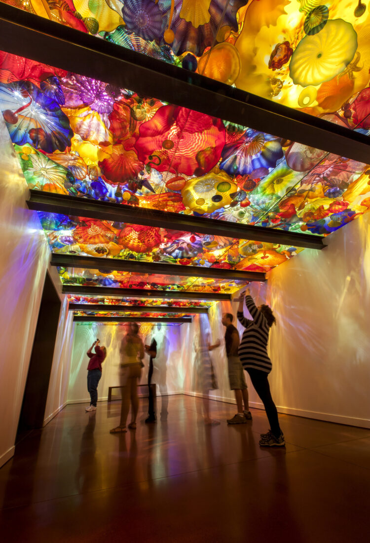 C Located at Seattle Center, Chihuly Garden and Glass brings together all the elements of artist Dale Chihuly’s work, including Drawings, iconic glass creations, large architectural installations, and personal collections. This long-term Exhibition features indoor galleries, the Glasshouse, and an ever-changing Garden, along with live glass demonstrations, a Theater, and The Bar at Chihuly, which features items from Chihuly’s personal collections.